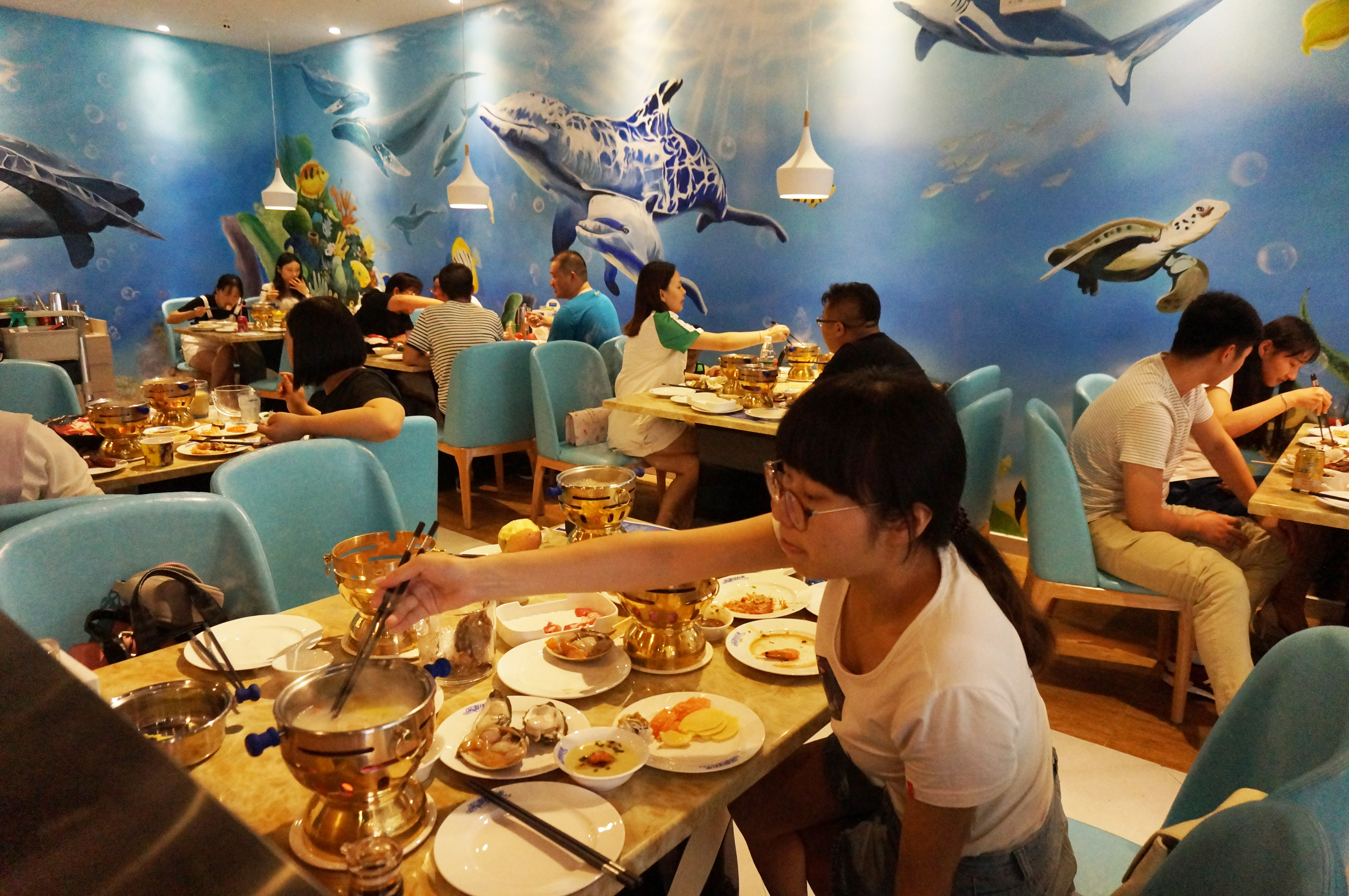 3D海底壁画与沙滩色座椅交相辉映